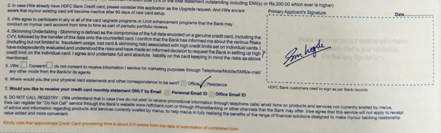 Finally after months of time HDFC Bank official executive emailed me the copy of application they have at their end.